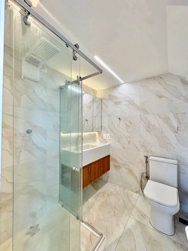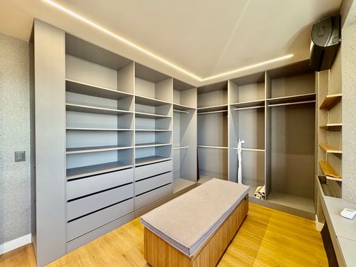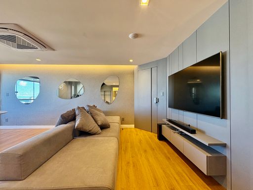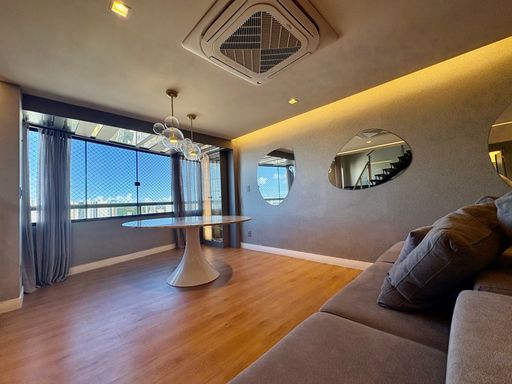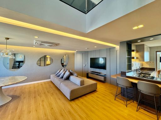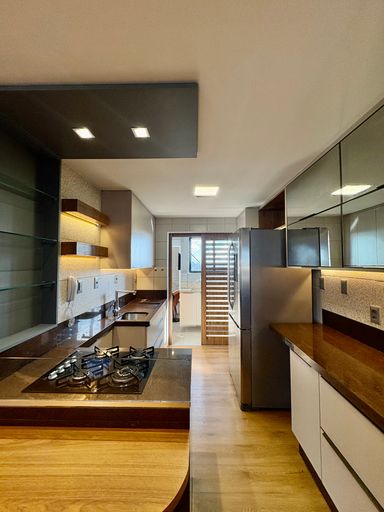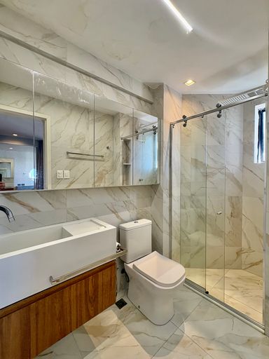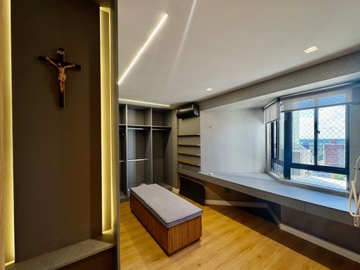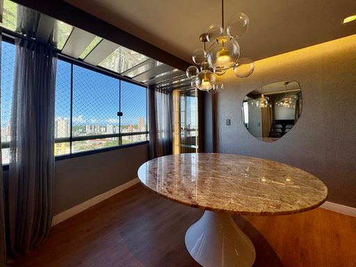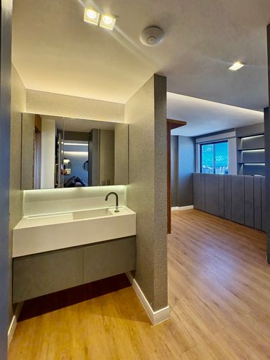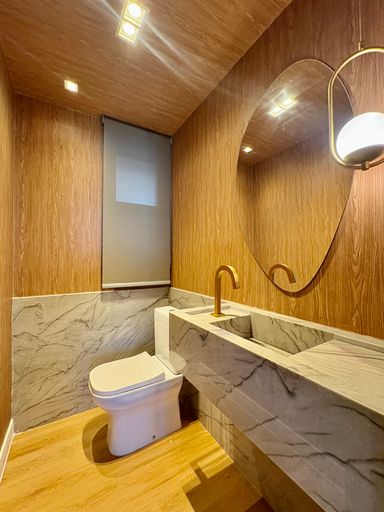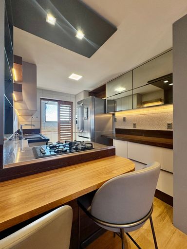 Cada detalhe foi cuidadosamente pensado, com acabamentos de alto padrão como porcelanato, mármore, papel de parede, espelhos, iluminação personalizada e marcenaria em laminados, resultando em um ambiente sofisticado e impecável.