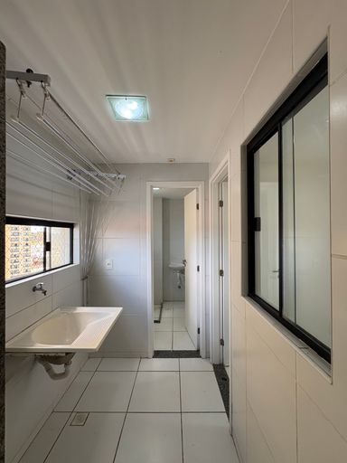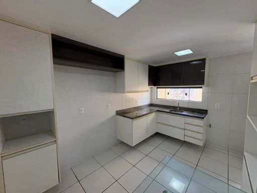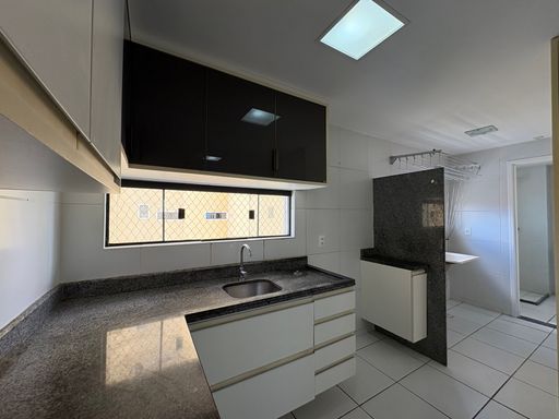 Lavabo e cozinha funcional com armários sob medida