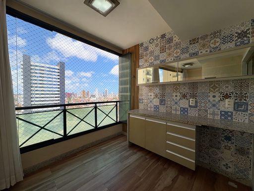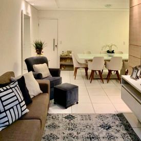 Apartamento à venda com 3 suítes, sala ampla para dois ambientes, lavabo, varanda, cozinha planejada, cortina de vidro e 123m² de área privativa.