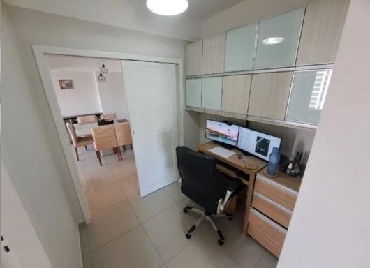 Com 130 m², o apartamento possui uma planta confortável e muito bem distribuída, composta por sala ampla para dois ambientes, cozinha funcional com área de serviço, 3 quartos sendo 2 suítes, além de banheiro social. O imóvel conta com móveis projetados em todos os ambientes, que permanecem no apartamento, garantindo praticidade e economia para o novo proprietário.