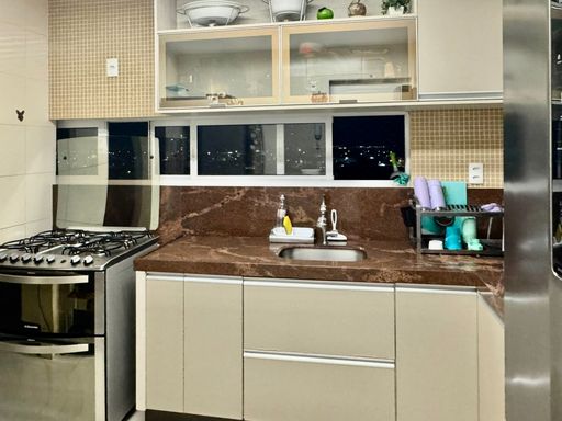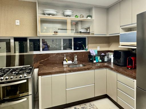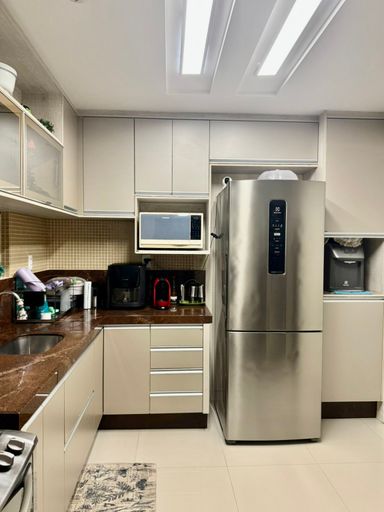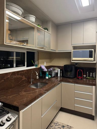 Cozinha com armários planejados, garantindo organização e praticidade;