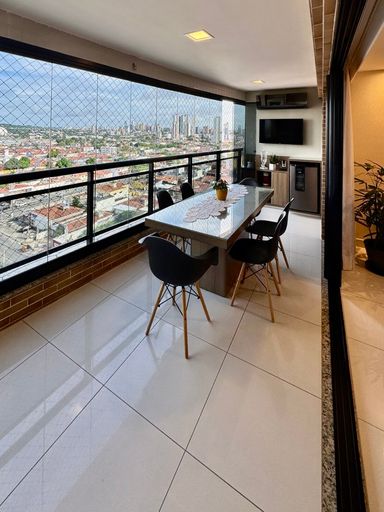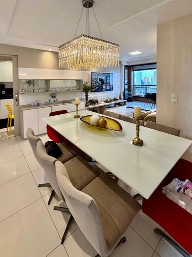 Apartamento à venda com 3 suítes (1 com closet), escritório, lavabo, varanda gourmet com churrasqueira a gás, sala de estar e jantar integradas, móveis planejados e 129m² de área privativa.