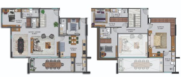 Apartamentos com 143m2, Sala ampla, cozinha, area de serviço e dependência completa. Já na parte íntima são 3 suítes e 3 vagas de garagem.