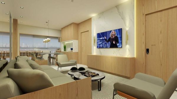 Apartamentos com 165m2, Sala ampla, cozinha, area de serviço e dependência completa. Já na parte íntima são 3 suítes e 3 vagas de garagem.
