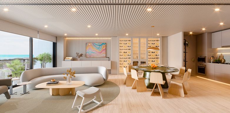 Galeria Residencial, com 150,25 m², projetada para oferecer integração entre áreas sociais e privativas, com circulação funcional e ambientes amplos.