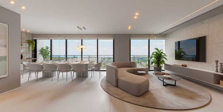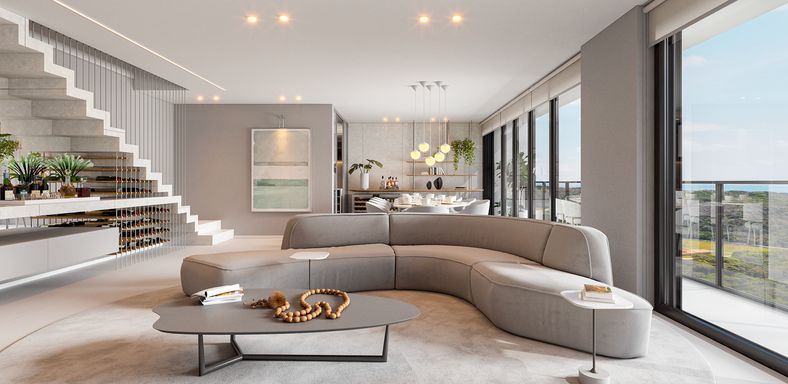 Apartamento duplex com 227,77 m², combinando amplitude, sofisticação e integração entre os ambientes.