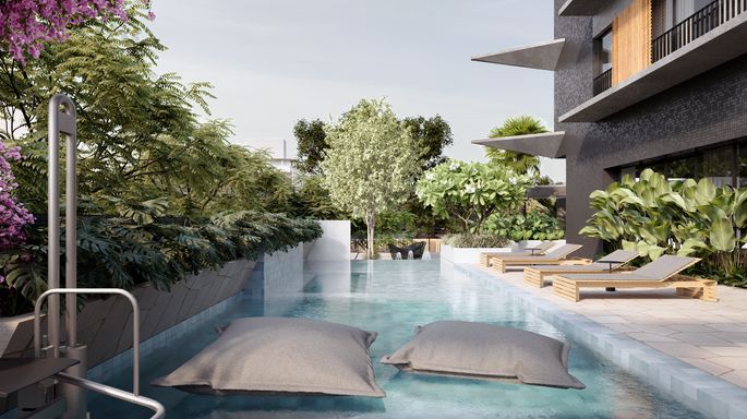 As áreas comuns são equipadas com diversos itens de lazer e conforto, incluindo 03 lounges externos, lounge interno, espelhos d’água, pet place, quadra, playground, espaço kids, sports bar, BBQ Gourmet, pool lounge, piscina adulto, piscina infantil, piscina deck, hidromassagem, GYM design pulse e spa.