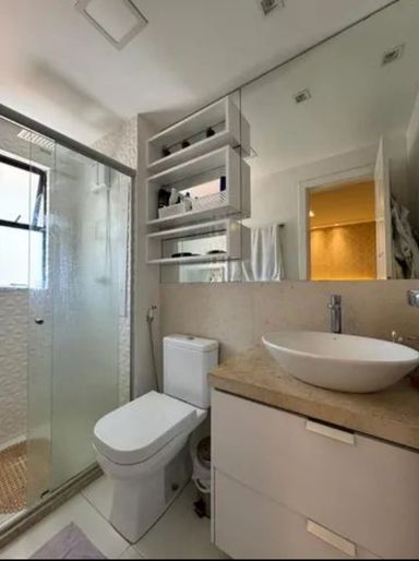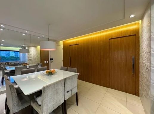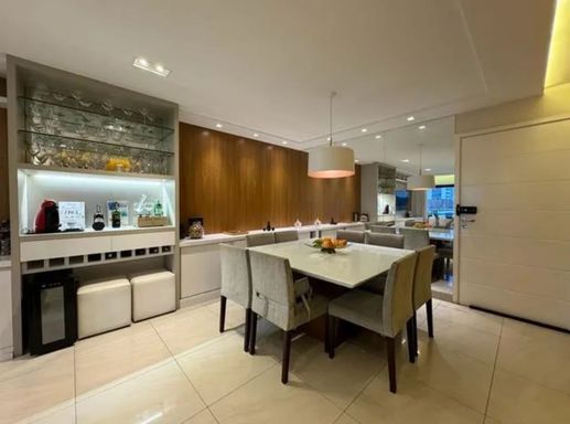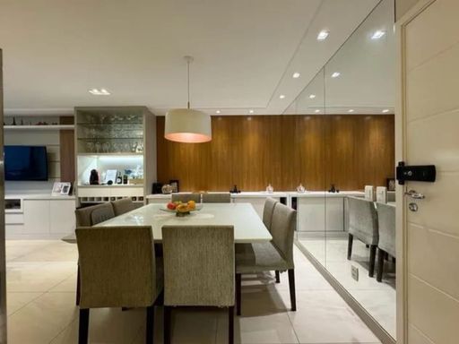 Este imóvel apresenta 3 quartos, sendo 2 suítes, lavabo, sala ampla para 2 ambientes, cozinha, área de serviço e 2 vagas de garagem.