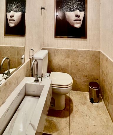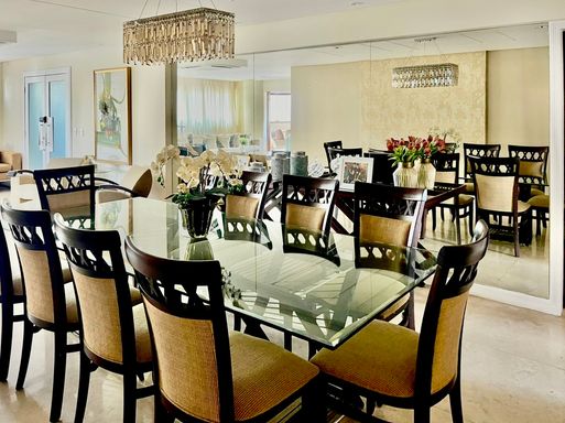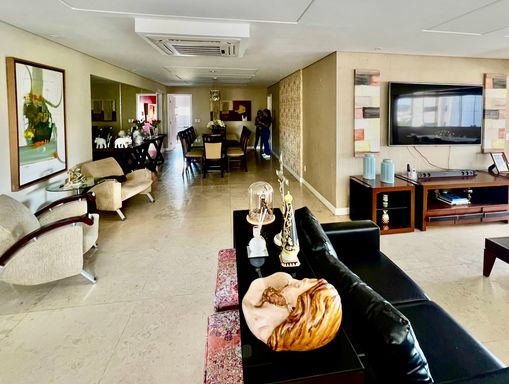 Alto padrão de acabamento, com piso em mármore italiano na sala