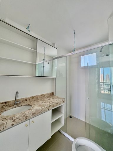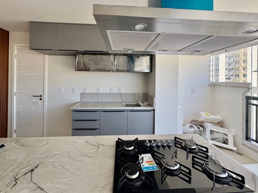 Com planejados, cooktop, box, espelhos, aquecedor, armários, 2 ares condicionados.