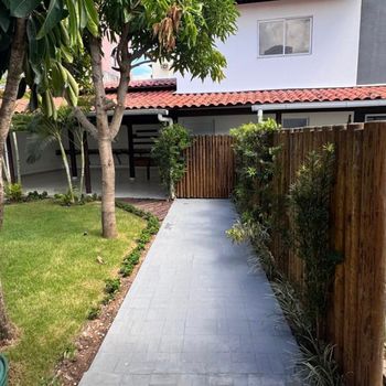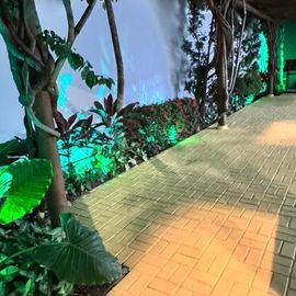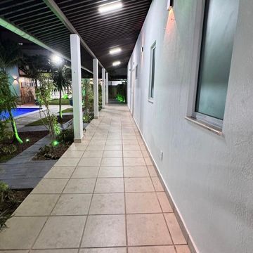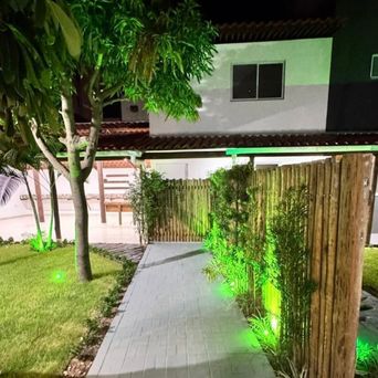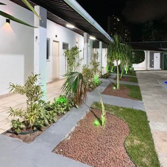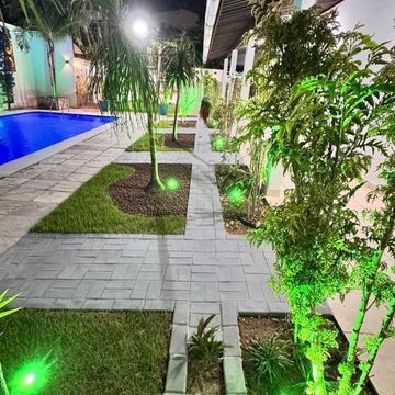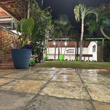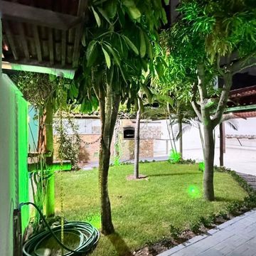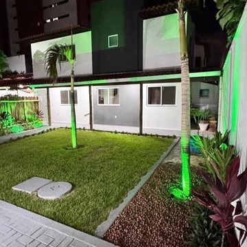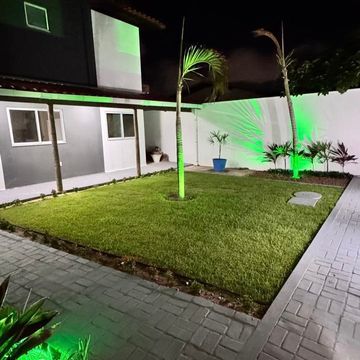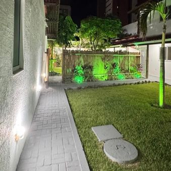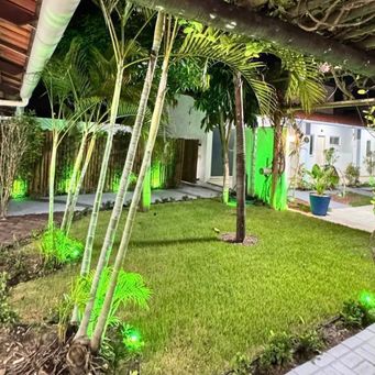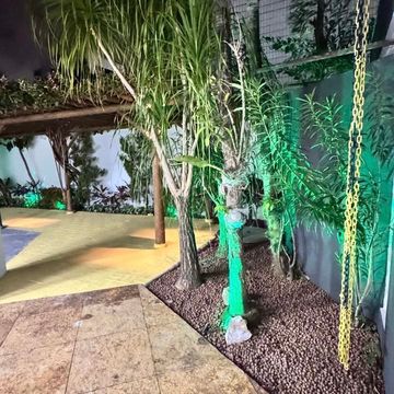 Jardim amplo com iluminação