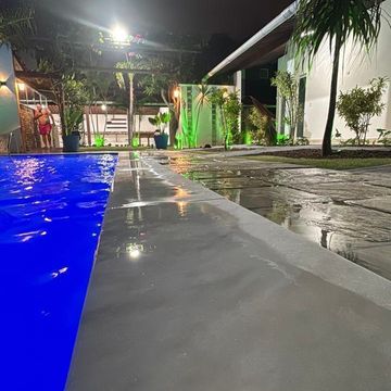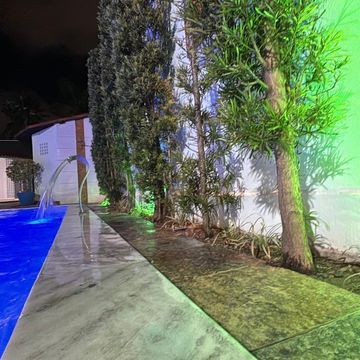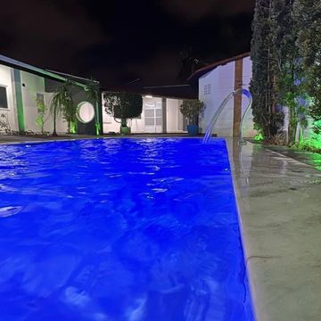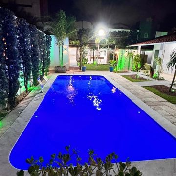 Piscina com cascata e iluminação em LED