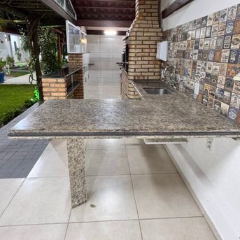 Espaço gourmet com churrasqueira e fogão a lenha