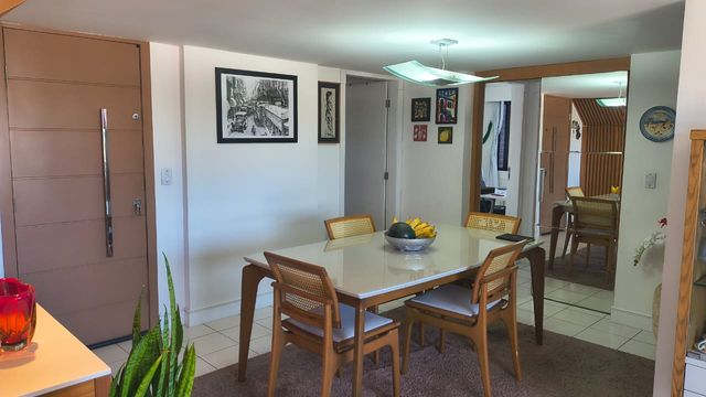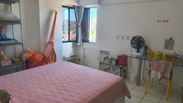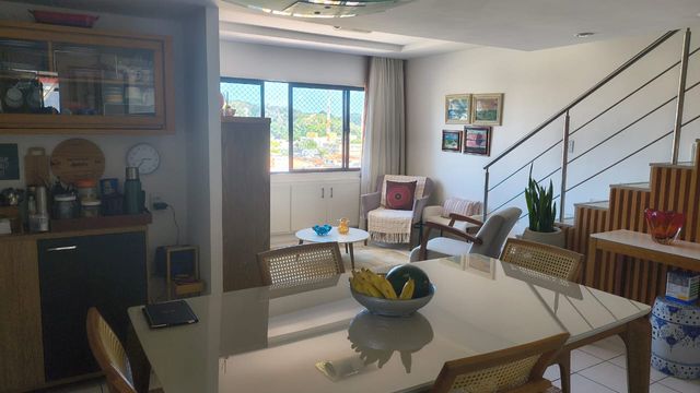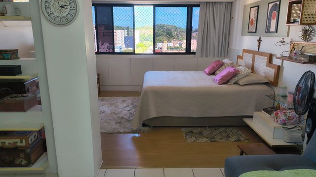 Apartamento duplex no último andar, com 214m², amplo, ventilado, com 4 quartos sendo 3 suítes, totalmente mobiliado (porteira fechada), dependência completa e 2 vagas cobertas.