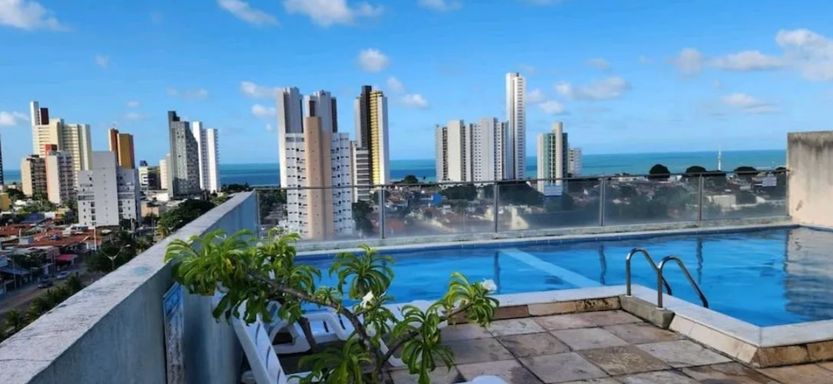 Área de lazer na cobertura com vista panorâmica para o mar