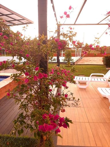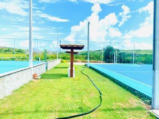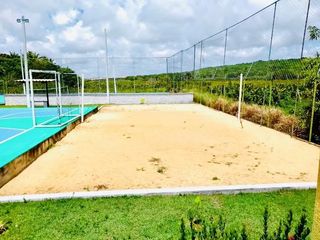 Quadra de tênis, poliesportiva, de vôlei de praia e mini campo de futebol.