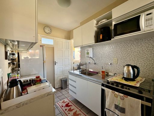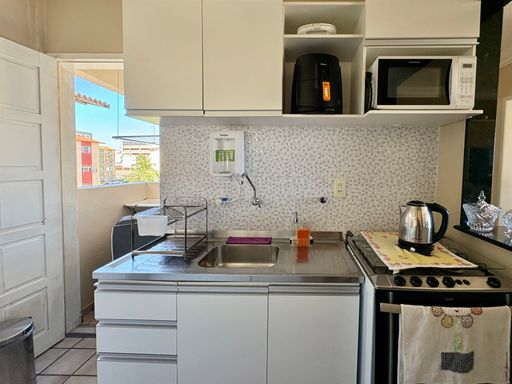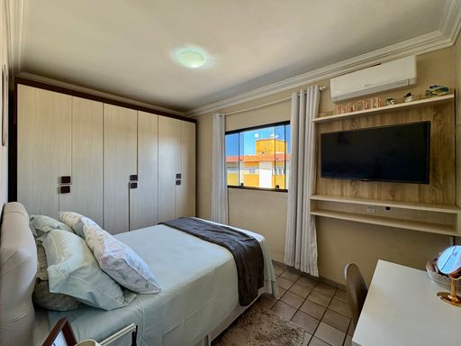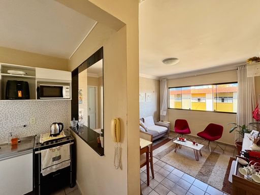 Piso em cerâmica, armários embutidos, cozinha e banheiro planejados, e janelas amplas que valorizam a ventilação.