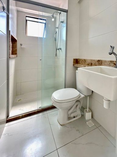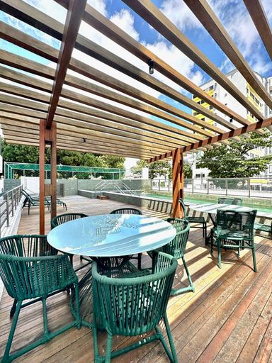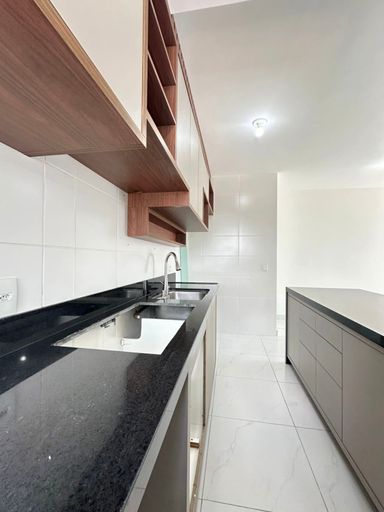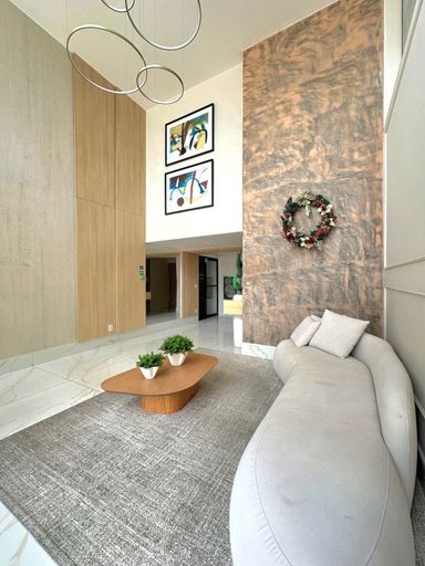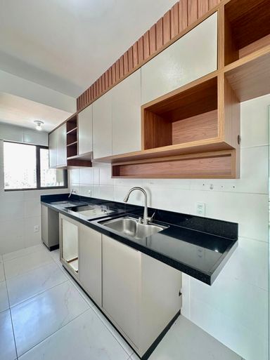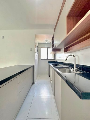 Com 75 m² de área privativa, o imóvel dispõe de 3 quartos (1 suíte), sala integrada à varanda, cozinha com planejados e banheiros com box instalados. O acabamento em porcelanato reforça o padrão contemporâneo e a praticidade.