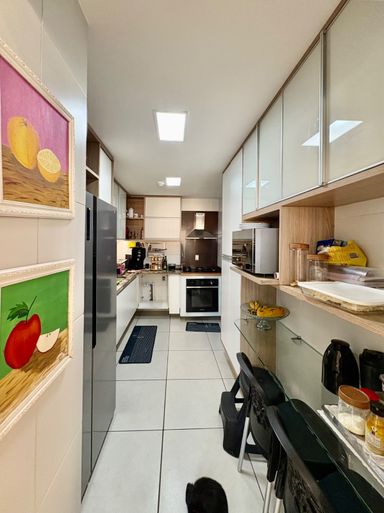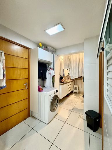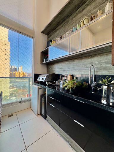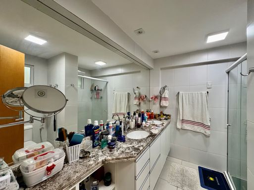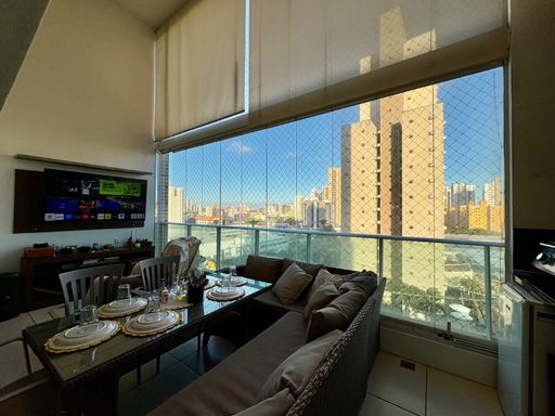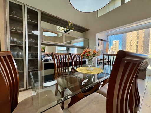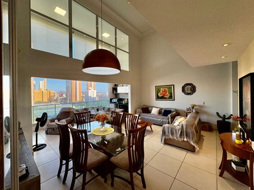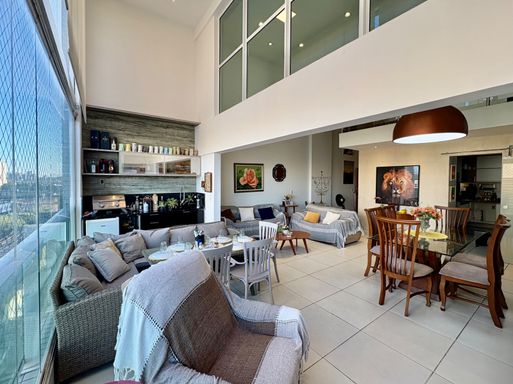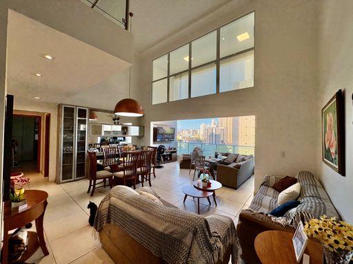 Apartamento à venda com 5 quartos (4 suítes), sala de estar e jantar com pé-direito duplo, varanda gourmet com churrasqueira, 181,78 m² de área privativa, cozinha com despensa, área de serviço e dependência completa.