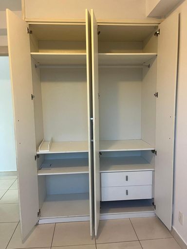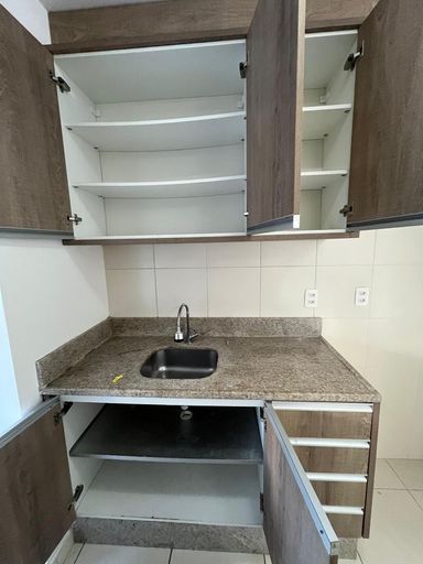 Apartamento com planejados, fogão, coifa, aquecedor d’água, box, espelho, guarda-roupa nos dormitórios posição sombra, andar baixo.