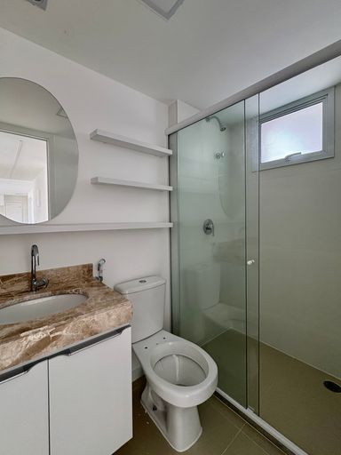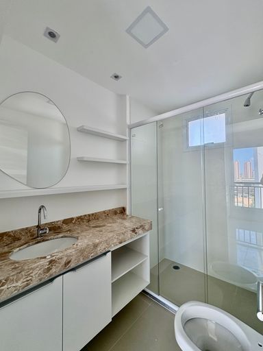 Com planejados, cooktop, box, espelhos, aquecedor, armários, 2 ares condicionados.